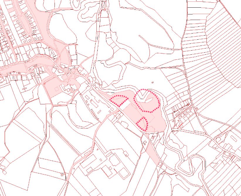 Soukromý pozemek přiléhající k příjezdové cestě by mohl umožnit nové propojení s herní zónou a fotbalovým areálem a to v současném stavu alespoň formou zeleně.