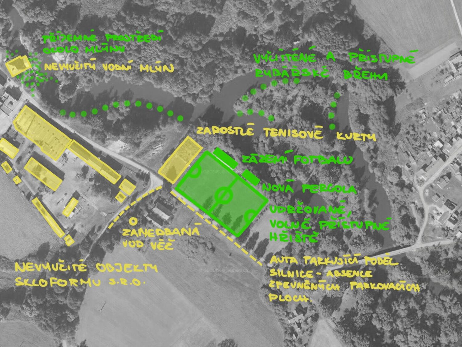 Návrh se bude zabývat vyčištěním pozemků od náletových dřevin a jejich zpřístupnění. Posíleny by měly být potenciály divoké přírody, řeky Lužnice a křižovatky cyklotras spolu s fotbalovým hřištěm se zázemím.