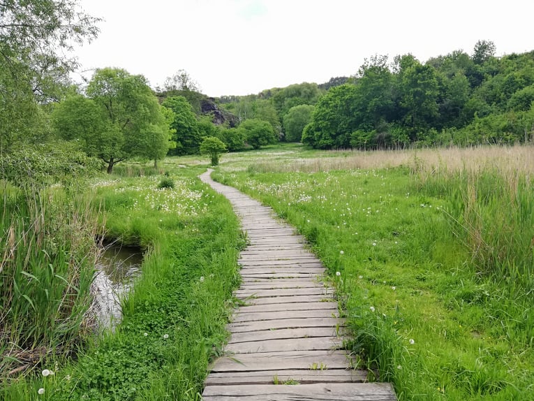 Nové stezky lemují břeh řeky Lužnice a nabízí obyvatelům i návštěvníkům možnost opustit hlavní silnici a vydat se do klidnějšího prostředí přírody. Východní stezka vede pod korunami stromů s občasnými výhledy na řeku, a v podmáčených místech bude cesta zpřístupněna povalovým chodníkem. Stezka nevede po břehu , ale nad jeho hranou, aby se zachovala intimní a tajemná atmosféra u vody.