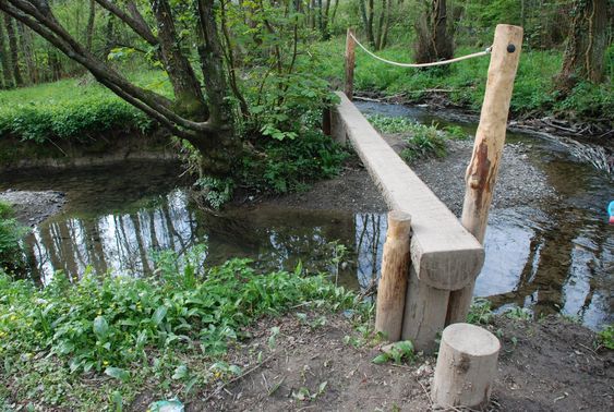 V rámci návrhu dětských hřišť a laviček jsme zvolili jako hlavní materiál dřevo. Pokud by se v místě dalo využít lokálních řemeslníků, mohli by se do navrhování a výroby zapojit i místní občané. Jedna z intervencí je například dřevěná lávka přes nejužší bod v zátoce, která našla využití již v dřívějších letech a rádi bychom tuto spojku s poloostrovem znovu využili.