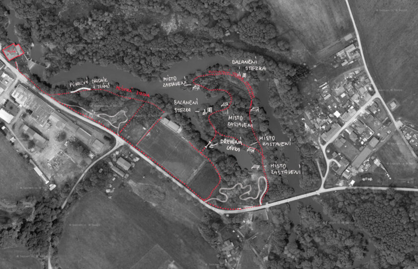 Tato oblast je jedinečná svou přírodou, včetně hodnotné vzrostlé vegetace a blízkosti vody, která je silným živlem, a proto je důležité ji respektovat. Navrhované prvky jsou jednoduché a v souladu s okolní krajinou. Neplánujeme zde budovat velký sportovní areál ani moderní hřiště, ale citlivě umísťujeme atraktivní prvky pro hru a rekreaci, které respektují jak přírodu, tak přirozený ráz tohoto místa.