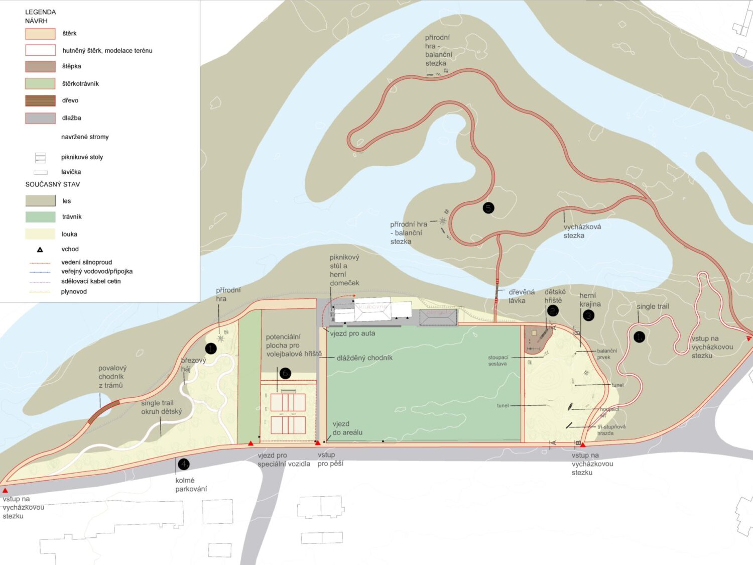 Celý návrh je zaměřen na to, aby lidé mohli trávit více času venku, užívat si přírodu, ať už při hře, sportu, nebo při klidném odpočinku.
